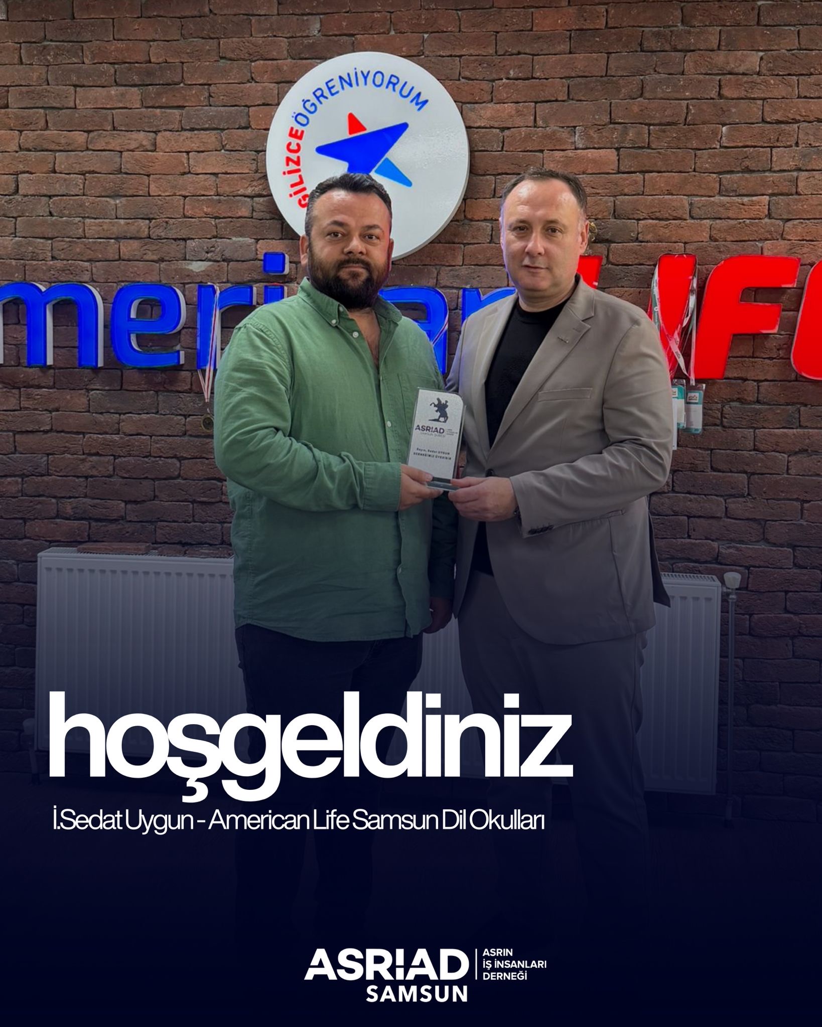 *American Life Samsun Dil Okulları İşletmecisi İ.Sedat Uygun*, ASRİAD (Asrın İş İnsanları Derneği) Samsun Şubesi’ne resmen üye olmuştur.